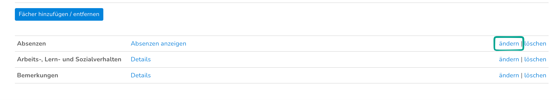 Im unteren Bereich findest du einen Abschnitt zu den Absenzen. Klicke hier auf "ändern".