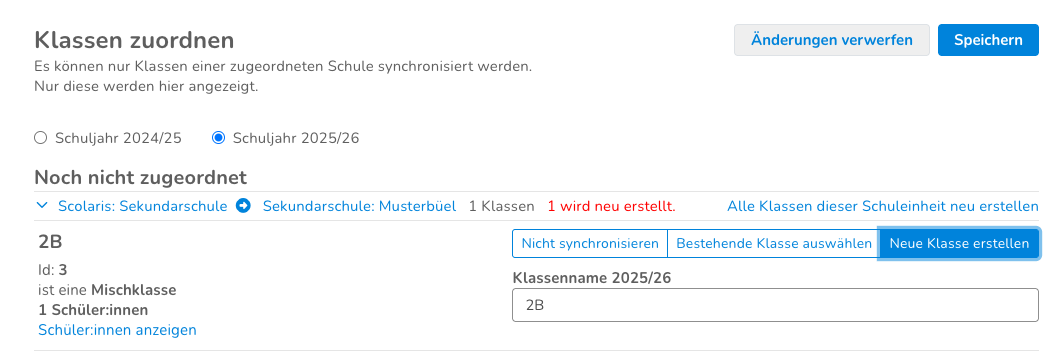 - Falls die Klasse nicht synchronisiert werden soll, klickst du auf "Nicht synchronisieren"