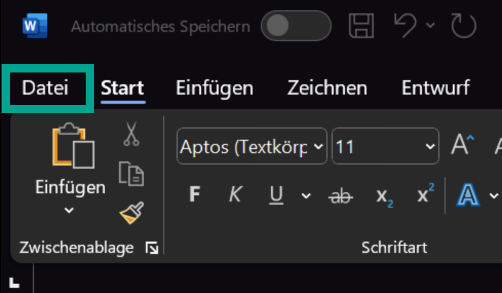 - Klicke oben links auf Datei.