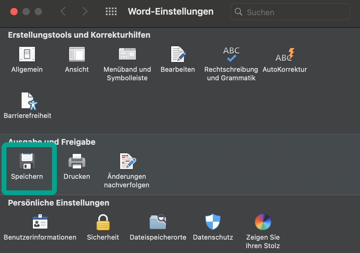Unter Mac:- Klicke in der Menüleiste auf Word > Einstellungen.