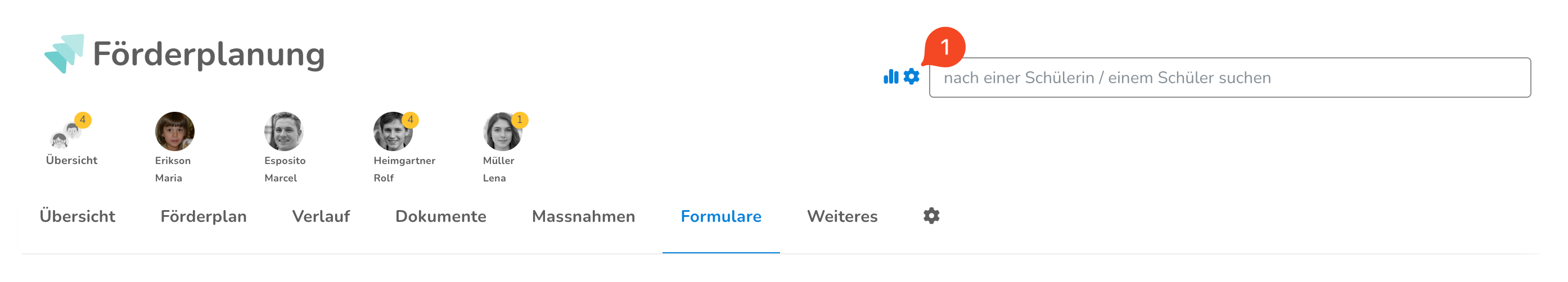 Gehen Sie in die Förderplanung und klicken Sie neben dem Suchfeld auf die Einstellungen (1).