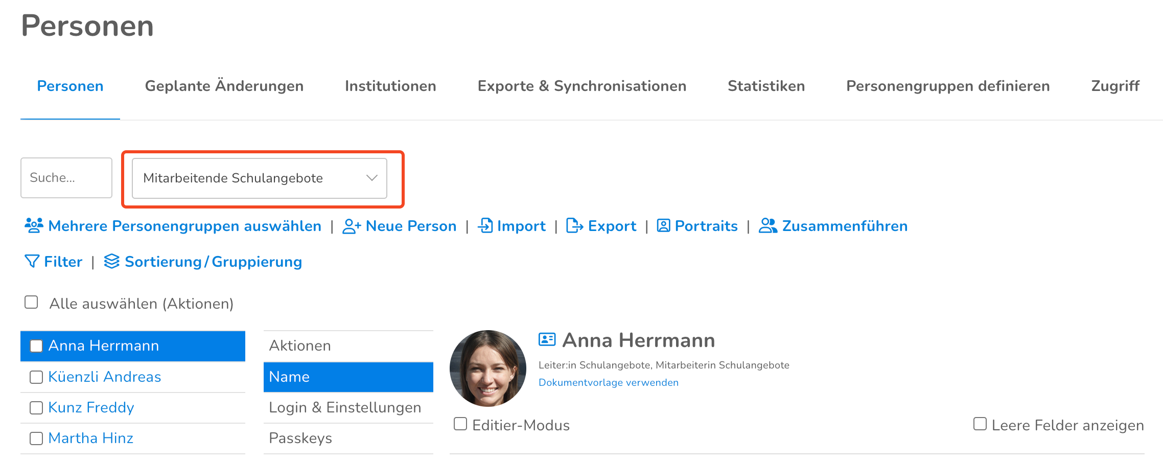 Personengruppe „Mitarbeitende Schulangebote“ aktualisieren