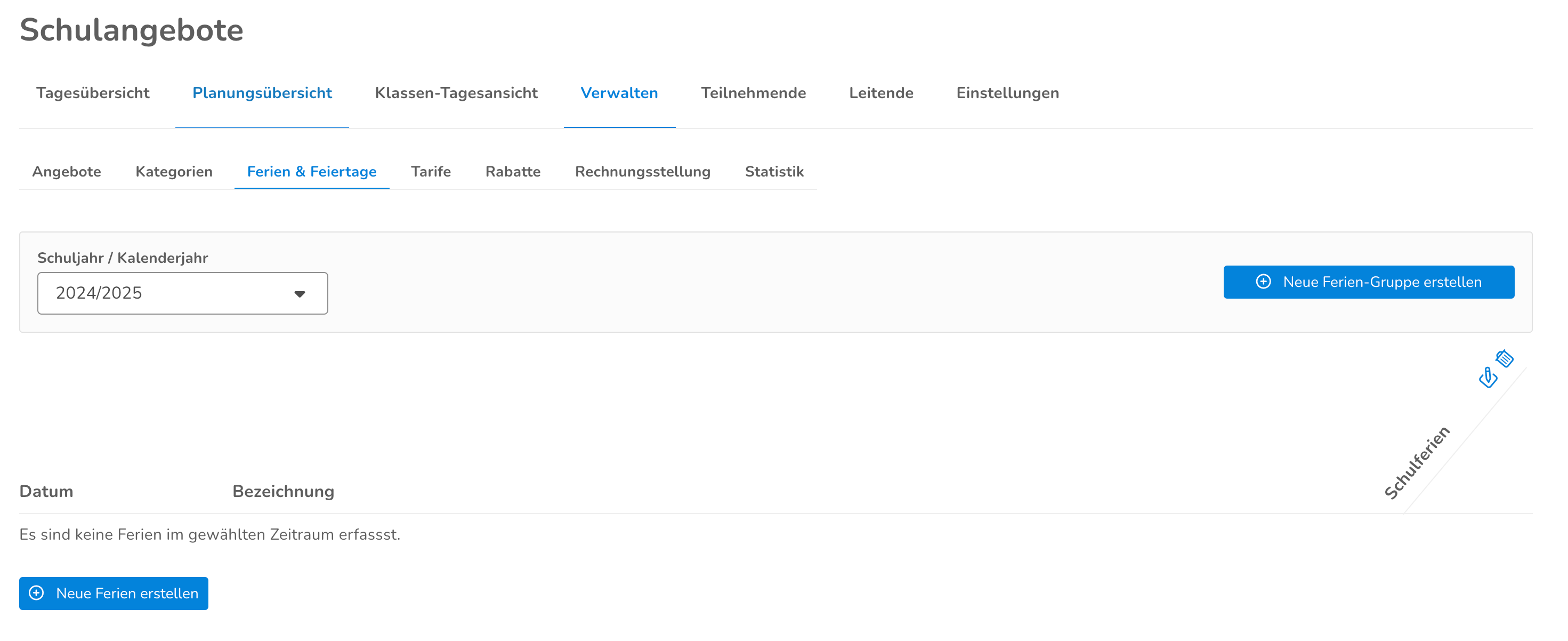 Ferien & Feriengruppen erfassen