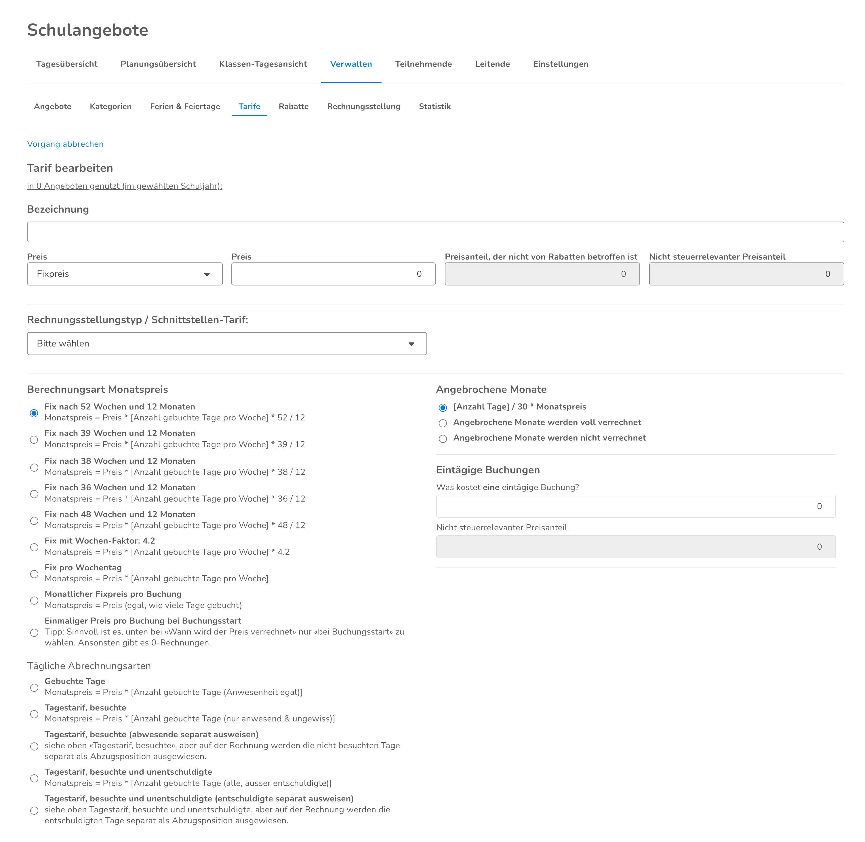 Tarife erstellen (falls Verrechnung über Escola erfolgt)