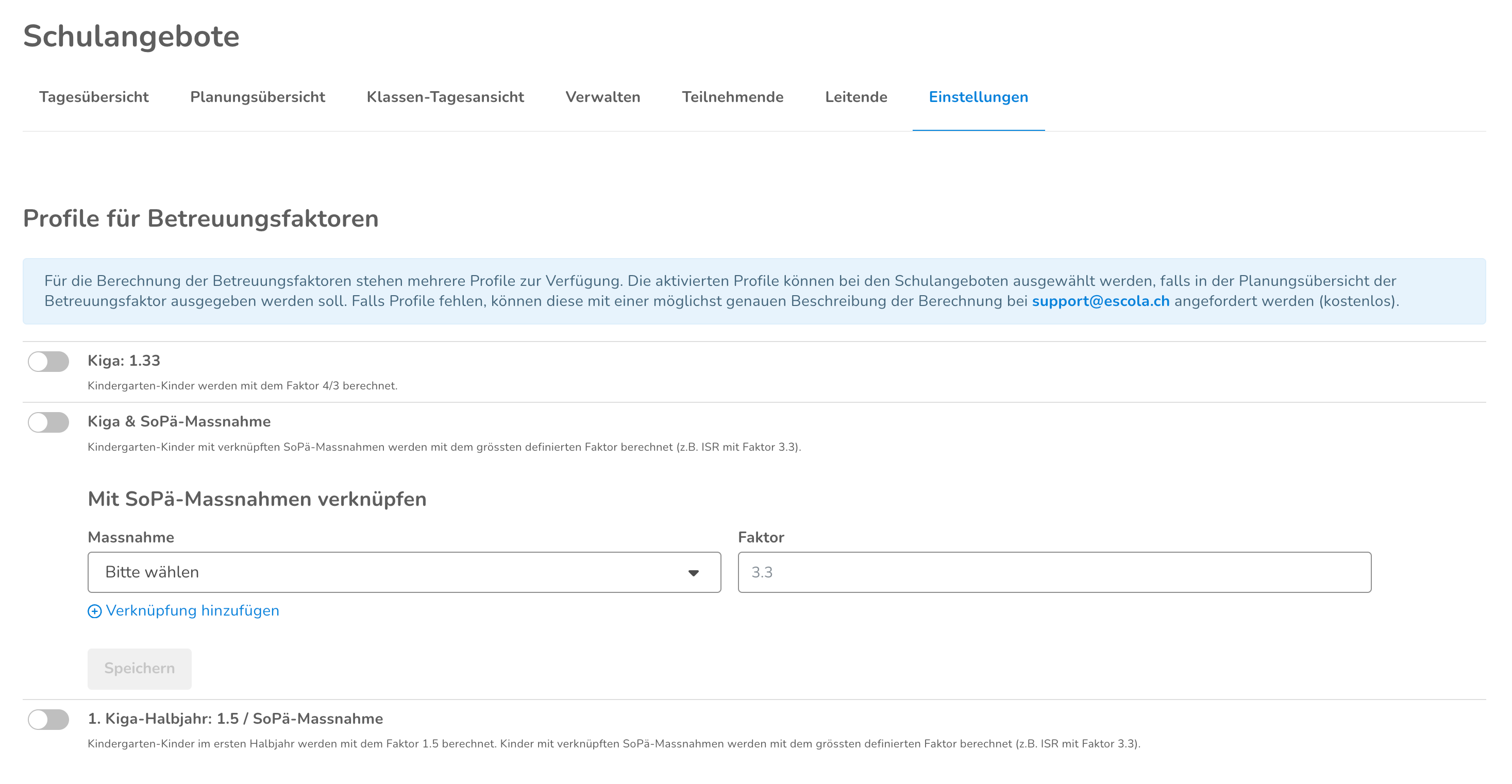• Falls notwendig, können für bestimmte Gruppen (z. B. Kindergarten-Kinder) Betreuungsfaktoren hinterlegt werden.