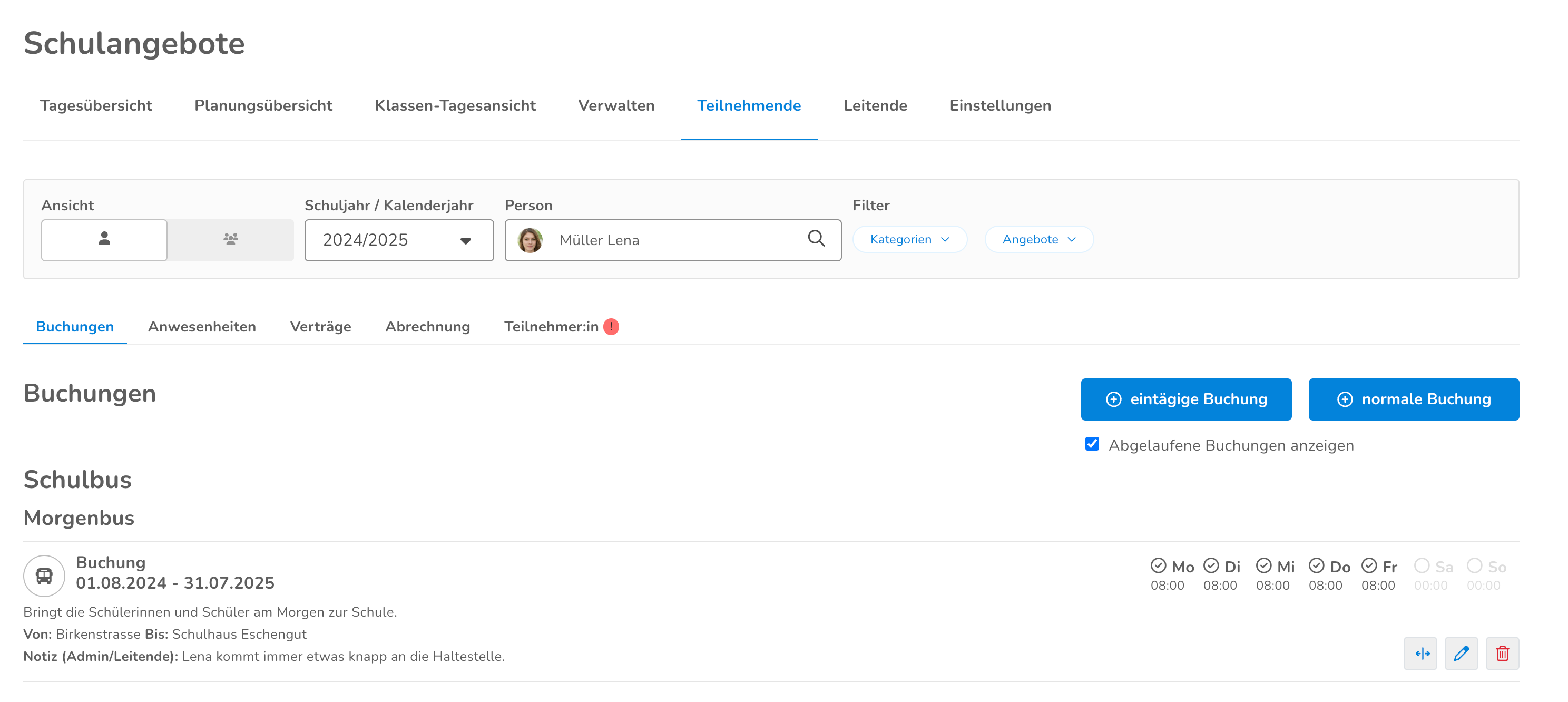 • Buchungen von Teilnehmenden oder Leitenden können dabei übernommen werden – entweder für die gesamte Laufzeit oder nur für bestimmte Zeiträume.