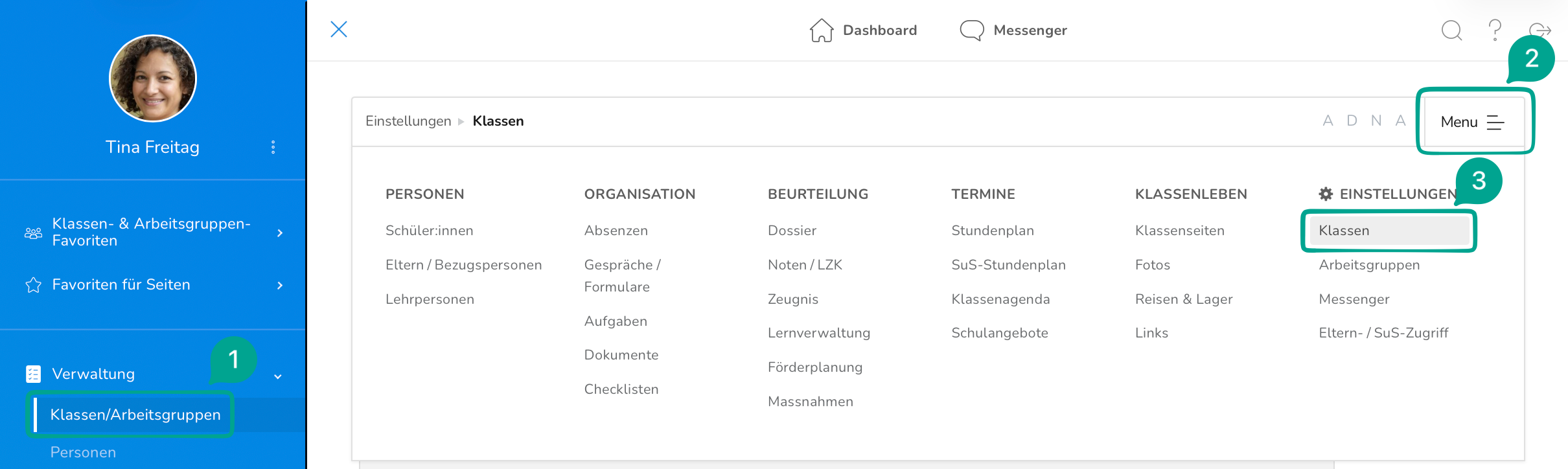 - Gehe zu Klassen/Arbeitsgruppen > Menu > Klassen (1-3)