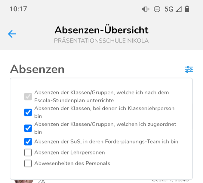 Absenzen in der App