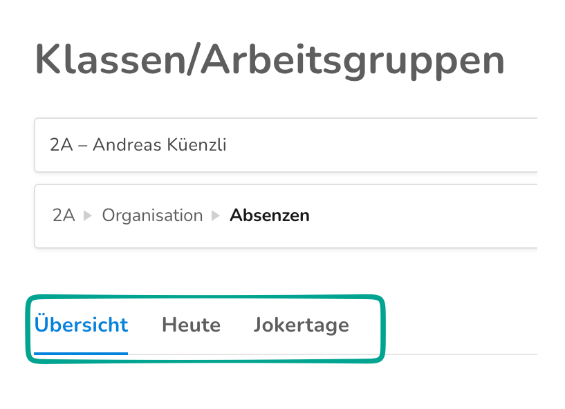 Wenn Eltern für ihre Kinder Absenzen erfassen, müssen diese durch eine Person mit Klassenlehrerrecht akzeptiert oder abgelehnt werden. Administrator:innen können die Absenzanträge im Dashboard nicht bearbeiten, jedoch unter Klassen/Arbeitsgruppen, falls sie ausnahmsweise mal eingreifen oder aushelfen müssen.