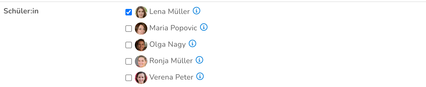 Stelle nun sicher, dass in der Auswahl die richtige Schüler:in angewählt ist.