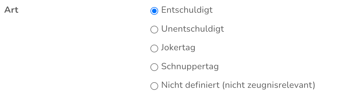 Wähle aus, um was für eine Art von Absenz es sich handelt.