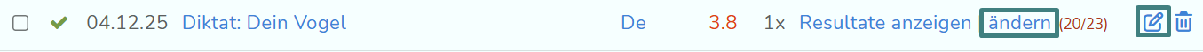 Wenn du auf "ändern" klickst, kannst du die Resultate überarbeiten. Klickst du auf das Bearbeitungssymbol, kannst du die LZK überarbeiten.