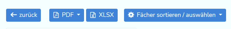 Über "Fächer sortieren/ auswählen" kannst du die Reihenfolge, in der die Fächer angezeigt werden, anpassen. Die Matrix kannst du dir zudem als PDF oder als Excel exportieren.