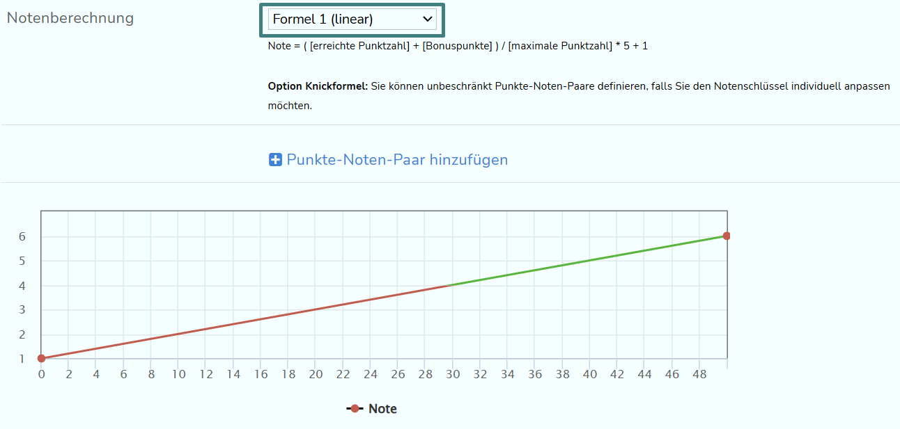Wähle die Methode der Notenberechnung aus. Es gibt drei verschiedene Formeln, über die Noten berechnet werden können.