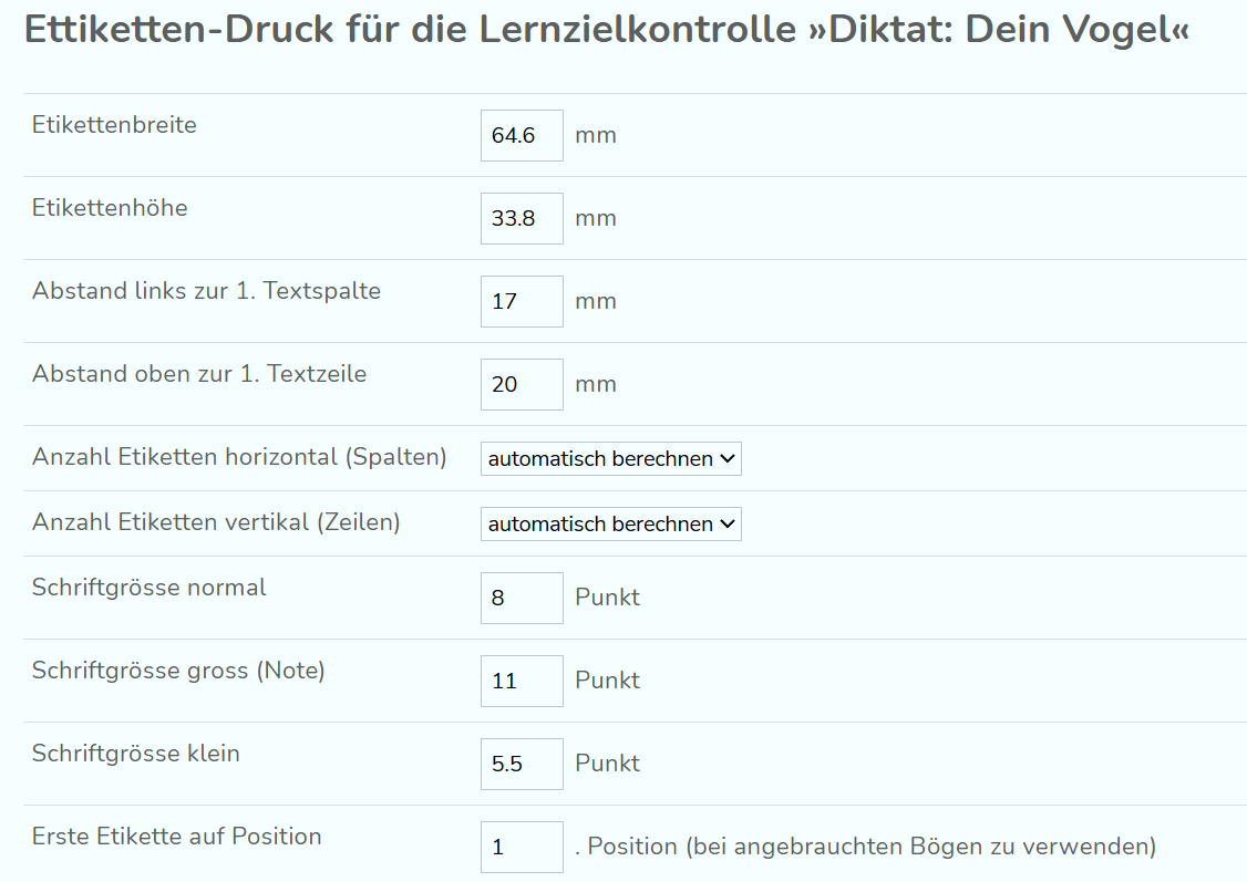 - Etiketten von Lernzielkontrollen erstellen