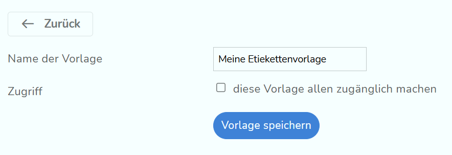 Wenn du öfter Etiketten in diesem Format verwendest, kannst du dir eine Vorlage dieser Einstellungen erstellen. Klicke dafür oben auf "Vorlage dieser Konfiguration erstellen". Dann kannst du der Vorlage einen Namen geben und entscheiden, ob auch andere Mitarbeitende diese Vorlage verwenden können sollen.