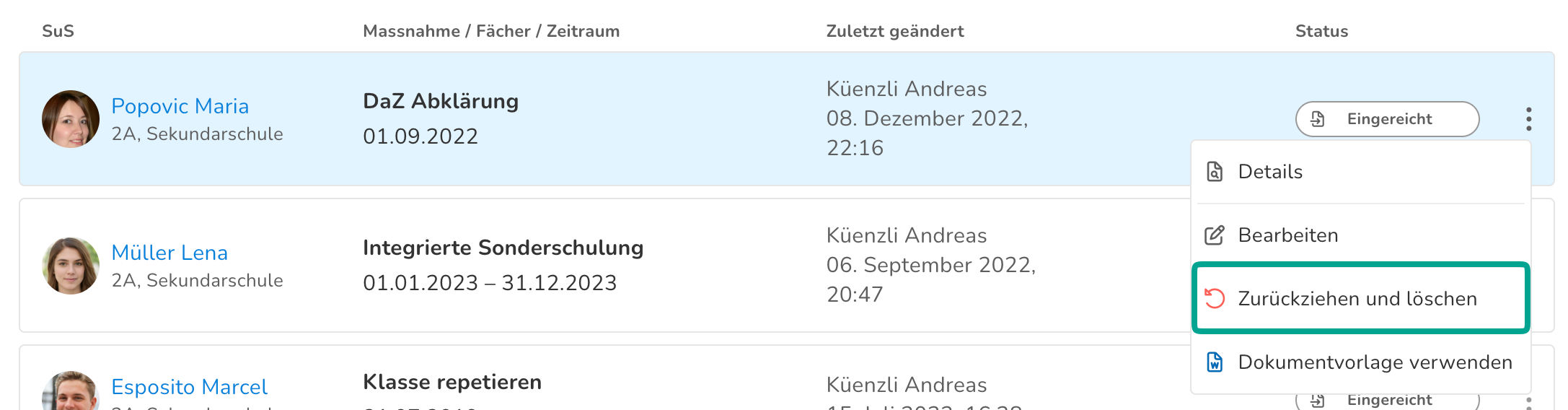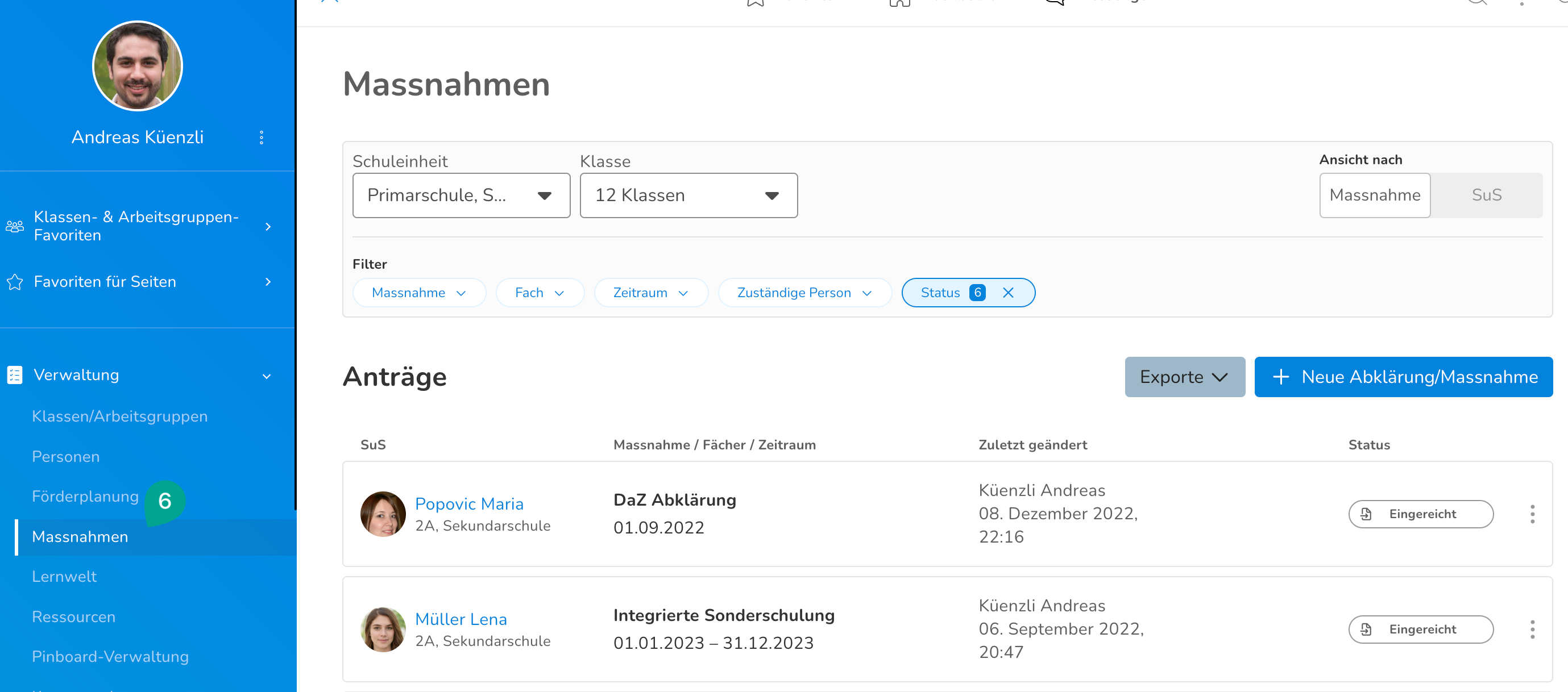 In diesem Artikel erfährst du, wie du im Modul "Sonderpädagogische Massnahmen" Massnahmen und Abklärungen für Schüler:innen erfassen, einreichen und verwalten kannst.