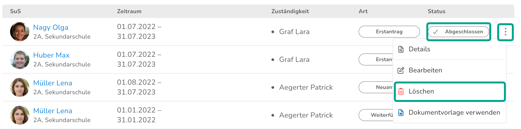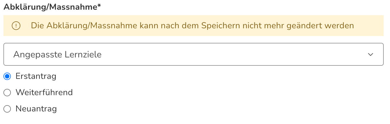 - Erstantrag: Eine Massnahme wird zum ersten Mal für eine Schüler:in beantragt
