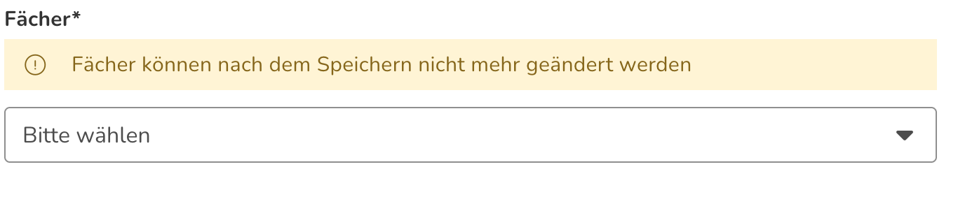 Fächer: Wenn sich die Massnahme oder Abklärung auf ein bestimmtes oder mehrere Fächer bezieht, können diese über ein Drop-Down ausgewählt werden.