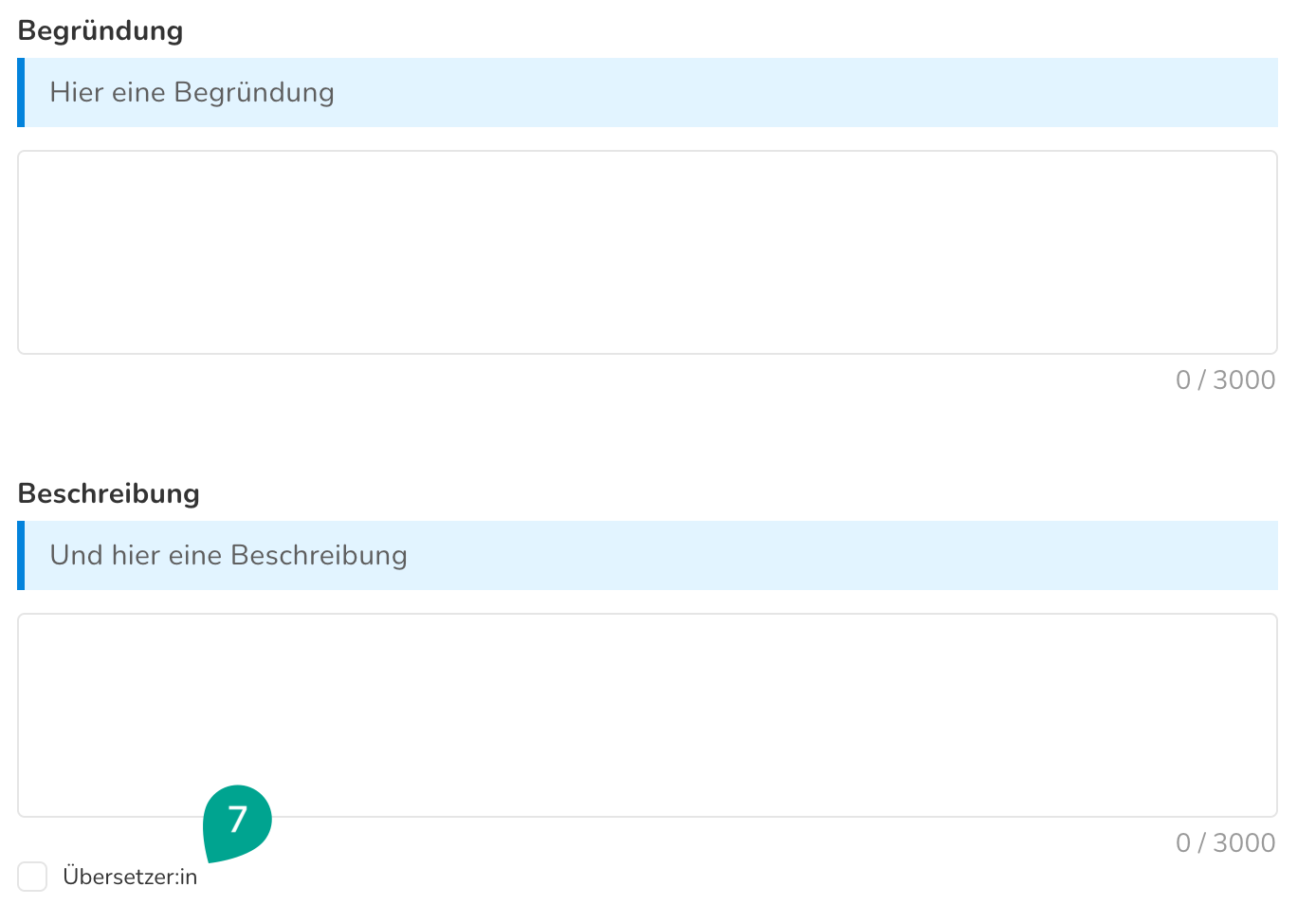 Übersetzer:in: Wähle diese Checkbox (7), wenn eine Übersetzung während der Massnahme notwendig ist.