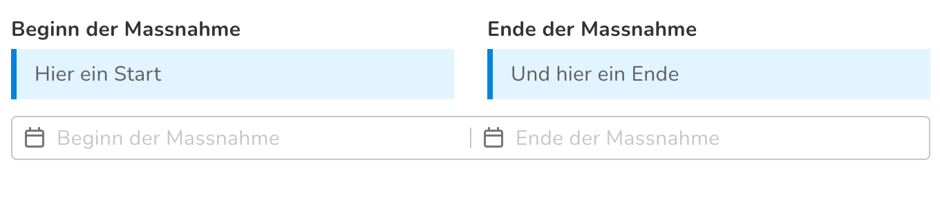 Beginn und Ende der Massnahme: Hier können Beginn- und Enddatum der Massnahme erfasst werden. Dieses Feld steht nur bei Massnahmen zur Verfügung.