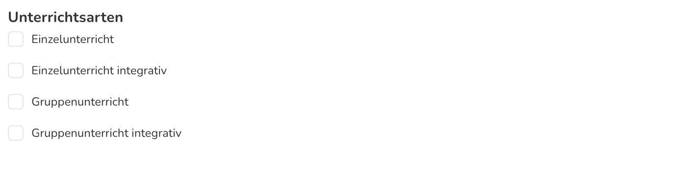 Unterrichtsarten: Hier kann definiert werden, ob die Massnahme in Einzel- oder Gruppenunterricht umgesetzt wird und ob dabei ein integratives Setting genutzt werden soll.
