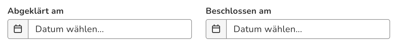 Abklärungs- und Beschlussdatum: Es kann erfasst werden, an welchem Datum der Bedarf der Massnahme abgeklärt wurde und wann der Beschluss zur Umsetzung getroffen wurde.